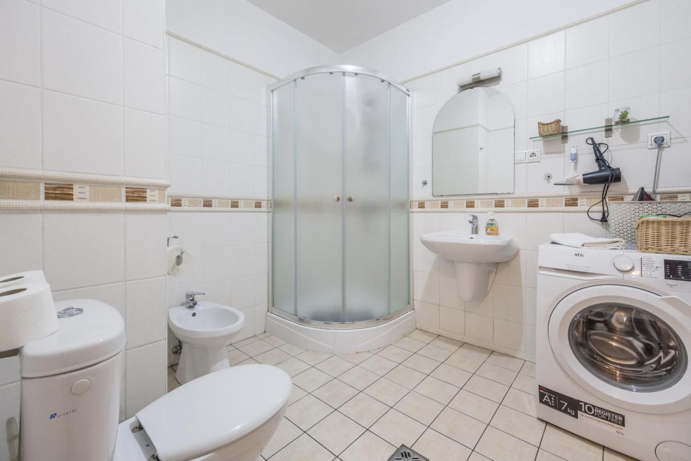 Two-Bedroom Apartment. Featuring a private entrance, this air-conditioned apartment comprises 1 living room, 2 separate bedrooms and 1 bathroom with a shower and a bidet. Meals can be prepared in the well-fitted kitchen, which comes with a stovetop, a refrigerator, a dishwasher and kitchenware. The spacious apartment provides a flat-screen TV with streaming services, a washing machine, a coffee machine, a seating area as well as city views. The unit offers 3 beds.