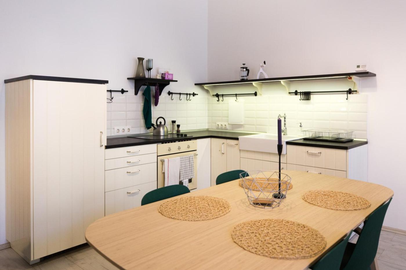 One-Bedroom Apartment. Boasting a private entrance, this apartment comes with 1 living room, 1 separate bedroom and 1 bathroom with a bath and a hairdryer. Meals can be prepared in the kitchen, which features a stovetop, a refrigerator, kitchenware and an oven. The unit is fitted with a seating area, a washing machine, a coffee machine and also has ancourtyard view. The unit has 2 beds.