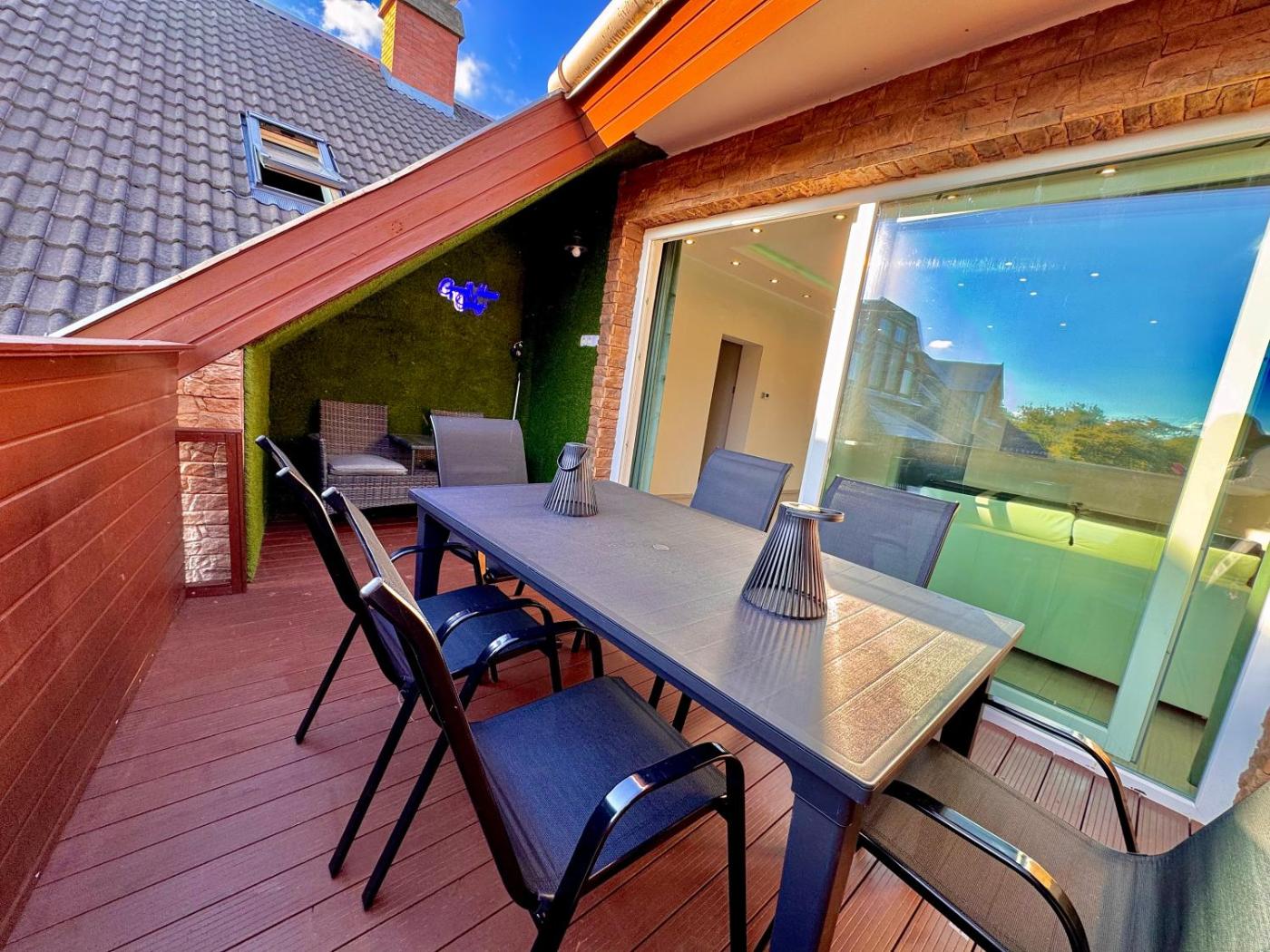 The spacious apartment with a balcony and garden views features 2 bedrooms, 2 living rooms, a flat-screen TV, an equipped kitchen with an oven and a microwave, and 1 bathroom with a walk-in shower. Towels and bed linen are provided in the apartment. The property has an outdoor dining area.