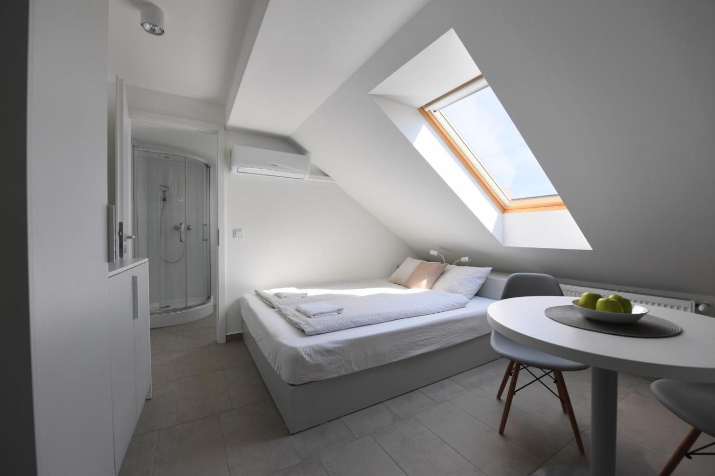 Studio Apartment. Boasting a private entrance, this air-conditioned apartment features 1 bedroom and 2 bathrooms with a shower. In the kitchen, guests will find a stovetop, a refrigerator, kitchenware and a microwave. The apartment features a dining area, a wardrobe, an electric kettle along with parquet floors. The unit has 1 bed. ;